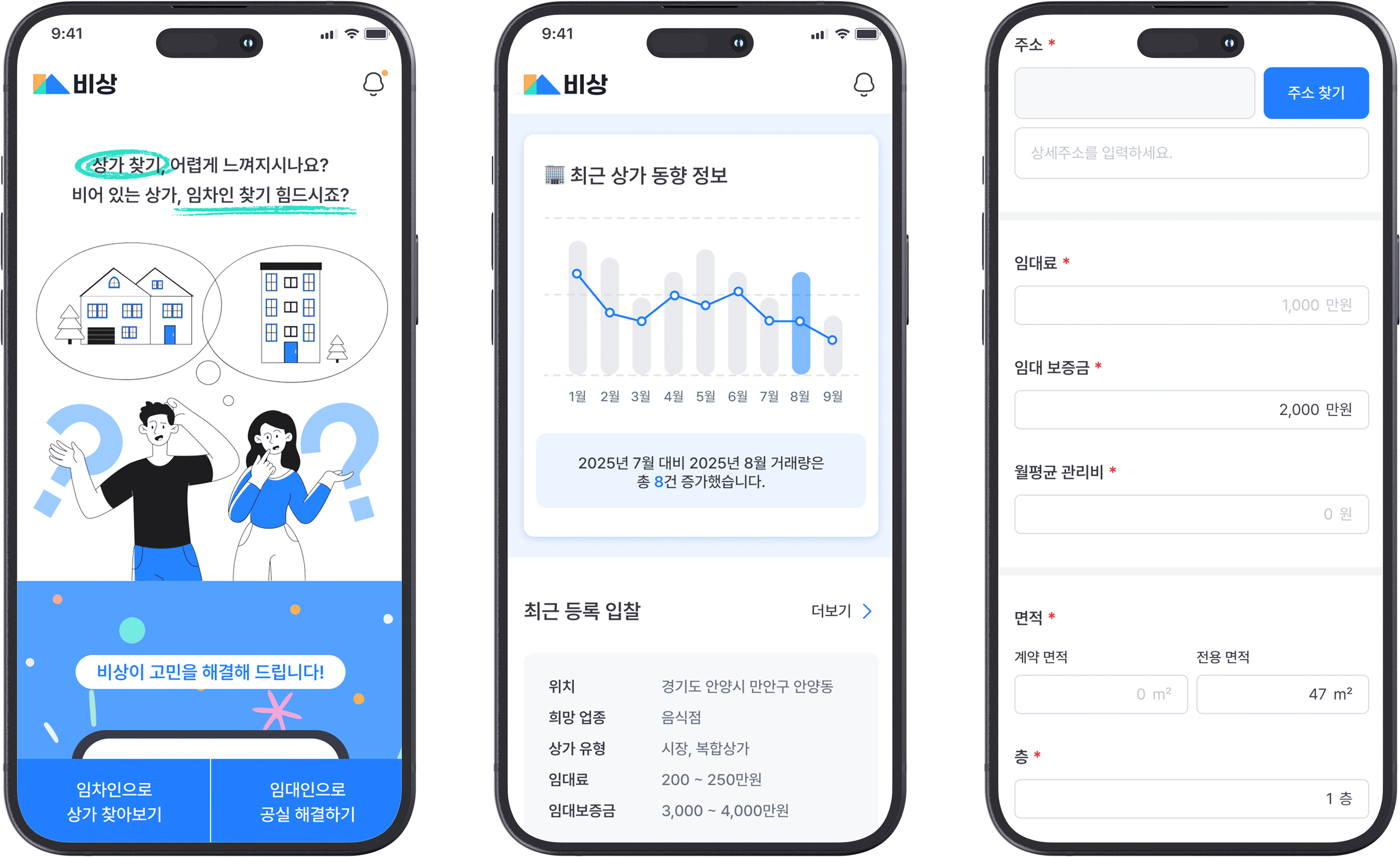 비상에서 최적의 조건으로 상가를 임대하세요.